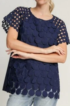 Umgee Full Size Heart Lace Sleeve Ruffle Collar Top Plus Size