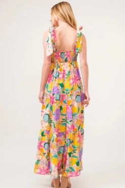 And The Why Shoulder Strap Tropical Fruit Printed Tiered Maxi Dress