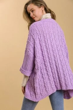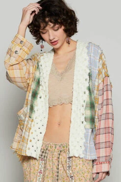 Annie Wear Checkered & Striped Open Front Long Sleeve Cardigan