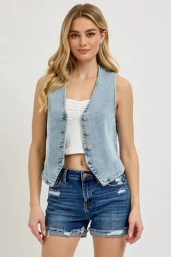 The v-neck summary-down vest is a chic and versatile layering piece for your wardrobe. With a flattering v-neckline and classic summary-down closure, this vest offers a polished and sophisticated look. Perfect for adding a stylish touch to any outfit, whether paired with a blouse and trousers for a professional ensemble or with a tee and jeans for a more casual vibe. Stay stylish and comfortable with the v-neck summary-down vest for a sleek and on-trend outfit.