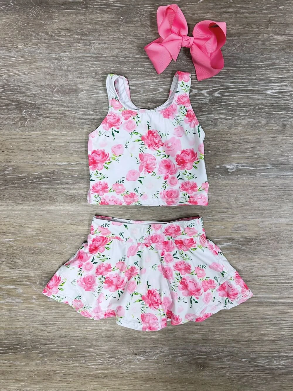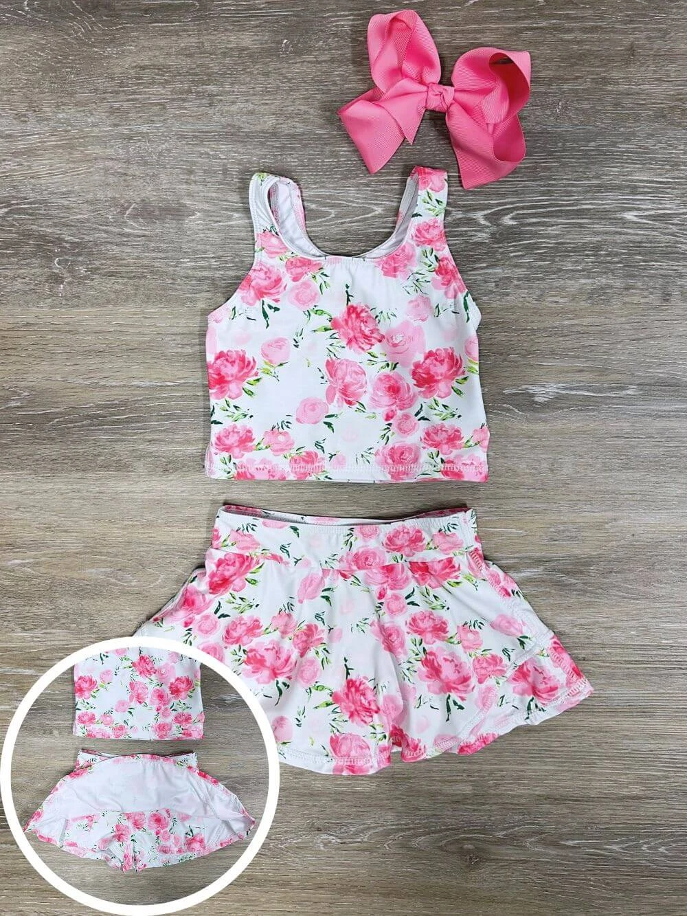Brighten up swim days with our Rosy Hot Pink Florals Girls Tankini & Skort Swim or Yoga Set. Featuring a vibrant hot pink floral tankini top and a matching swim skirt, this set is perfect for summer fun. Comfortable, stylish, and ideal for the beach or pool, it’s a must-have for your little fashionista’s swimwear collection! And be sure to check out our other must have new arrivals.