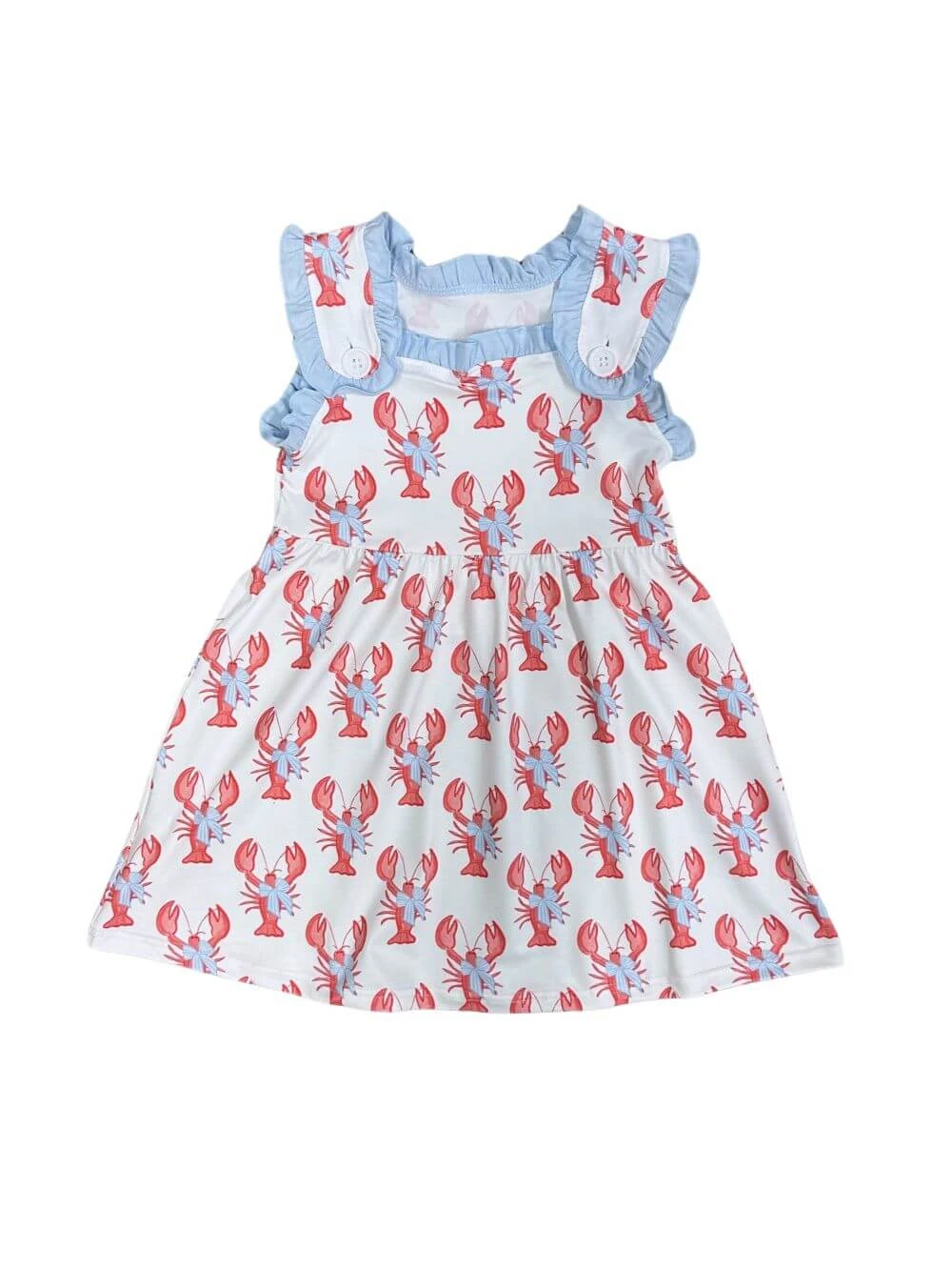 Our Seaside Sweetheart Lobster Girls Dress is a charming coastal look for summer! This white tank-style dress features an allover red lobster print with sweet blue bows and matching blue ruffle trim around the sleeves. Perfect for beach days, family vacations, or lobster boils, it’s a comfy and cute outfit made for seaside fun and sunny adventures. And be sure to check out our other must have new arrivals.