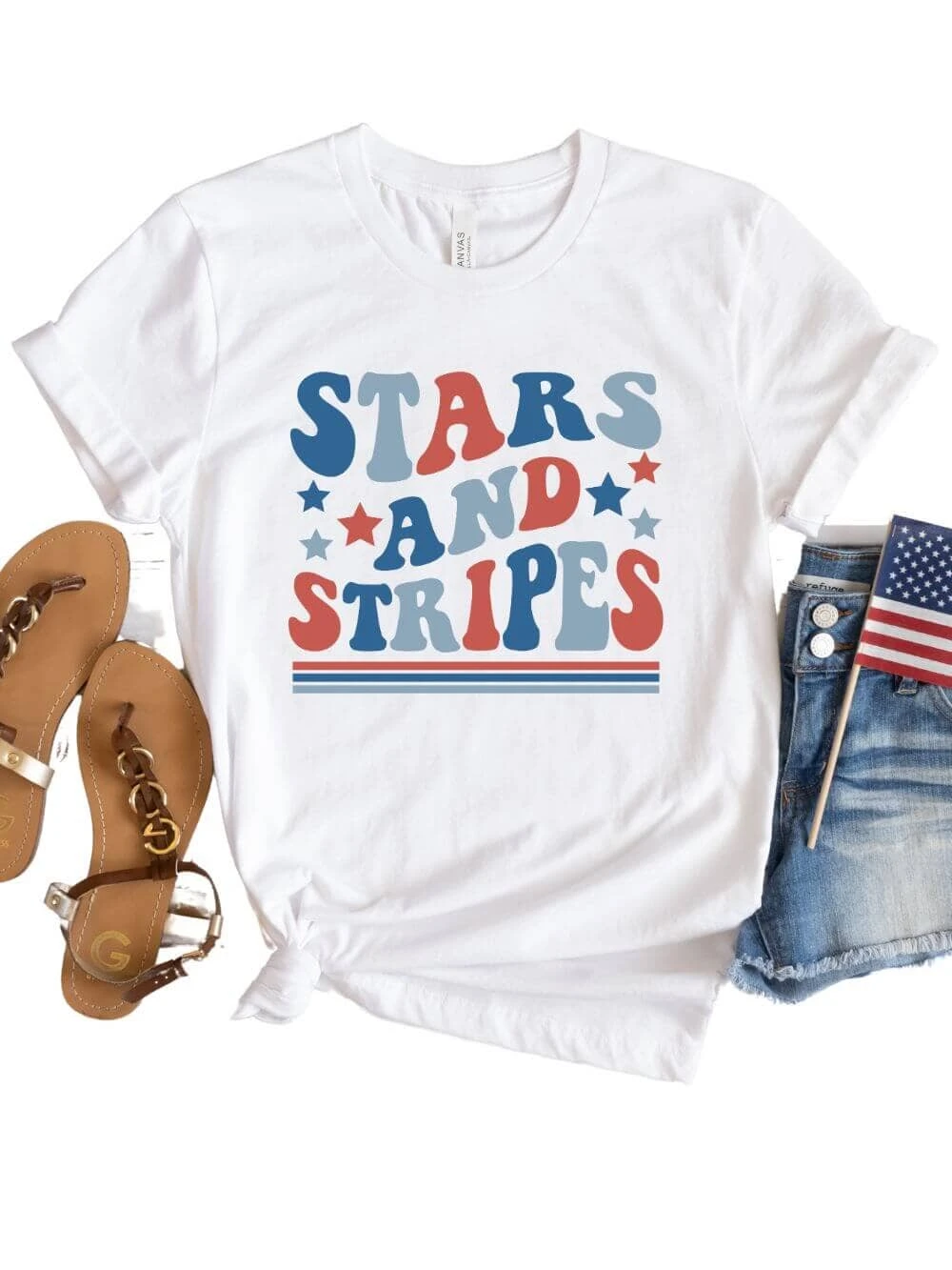 Get ready to celebrate the 4th of July in style with our Stars & Stripes Patriotic T-shirt! Featuring a bold retro font in classic red and blue, this shirt is the perfect way to show your love for America. Made from high-quality Bella + Canvas cotton blend fabric, this shirt is both comfortable and durable. Available in six different colors, you can choose the perfect shade to suit your personal style. And with sizes ranging from XS to XXXL, this shirt is sure to fit everyone. Each shirt is made to order to ensure a perfect fit and to meet your unique style needs. Whether you’re barbecuing with friends or watching the fireworks, our Stars & Stripes Patriotic T-shirt is the perfect choice for any 4th of July celebration.