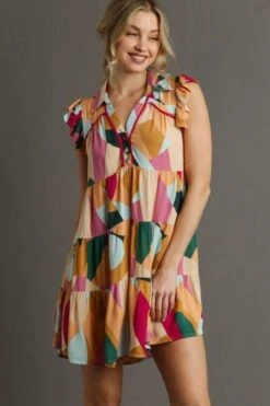 A summary detail ruffle sleeve mini dress typically features decorative summarys along the front or side of the dress, adding a charming detail to the overall design. The ruffle sleeves add a feminine touch, enhancing the dress with a playful and stylish look. This type of dress is perfect for various occasions, such as a casual day out or a special event, depending on the fabric and overall design.