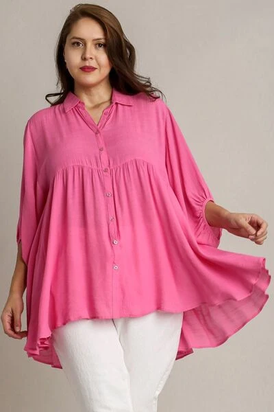 This shirt features a high-low hemline, with the back being longer than the front, creating a chic and dynamic silhouette. The tiered design adds interesting texture and flow to the garment, giving it a feminine and playful look. The summary-down style offers classic versatility and allows for easy layering and styling options. This shirt is perfect for adding a touch of sophistication to your casual or dressy outfits, making it a must-have piece in your wardrobe.