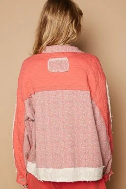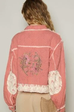 POL Embroidered Open Front Quilted Jacket With Crochet Pockets